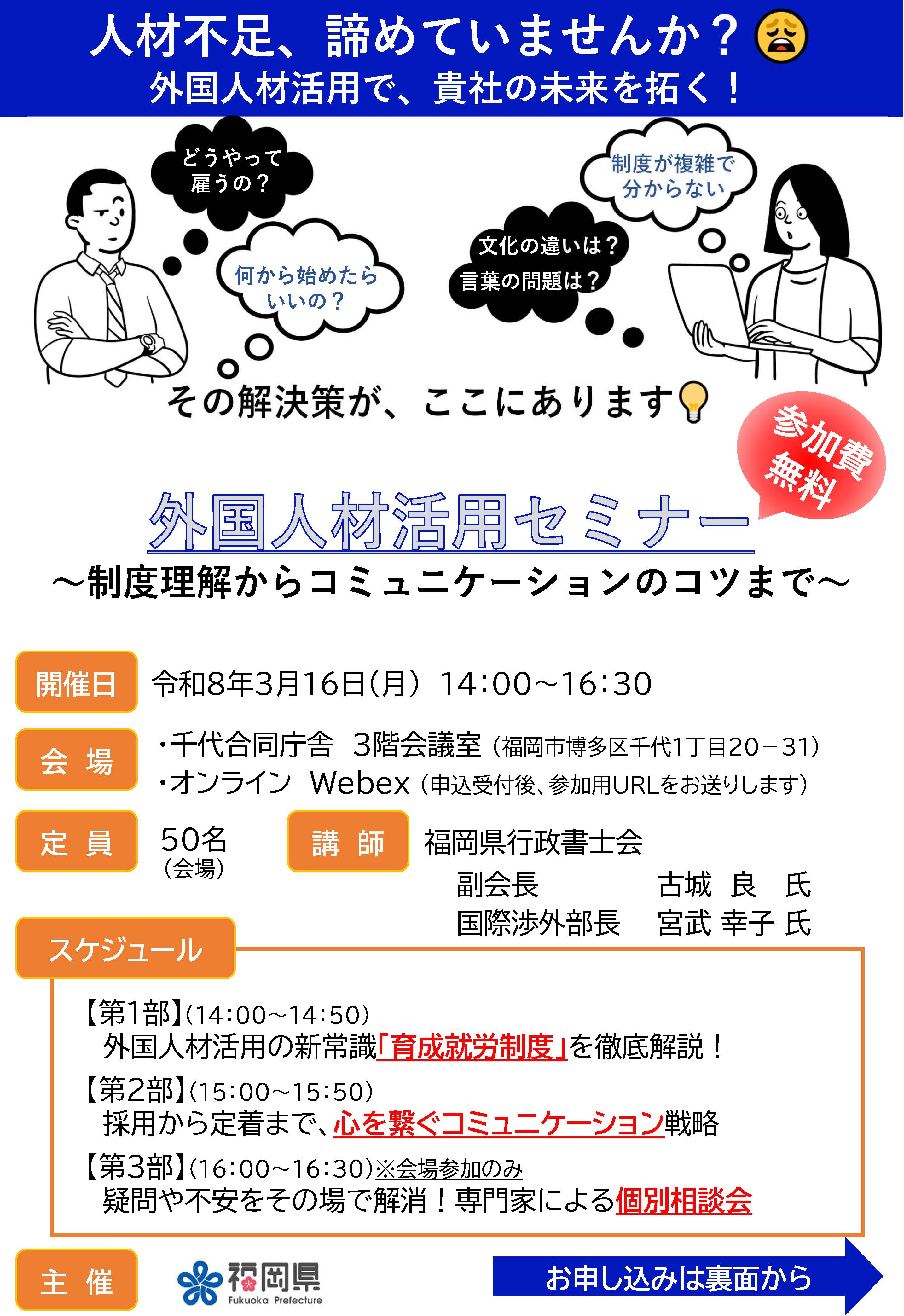 福岡県「外国人材活用セミナー&個別相談会」のご案内